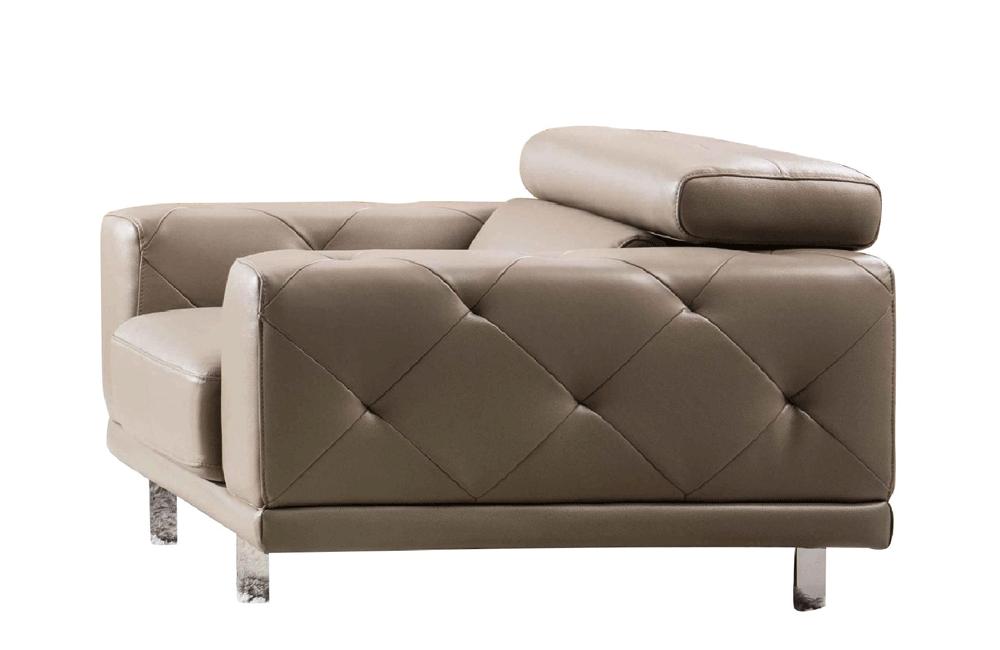 Classic design with modern flavor. This contemporary living room sofa charms from the first sight and enchants even more when you experience the comfort it provides. The Chair comes with adjustable headrest(s) that add to the comfort and modern look. Upholstered in Top Grain Leather with matching PVC on sides and back.