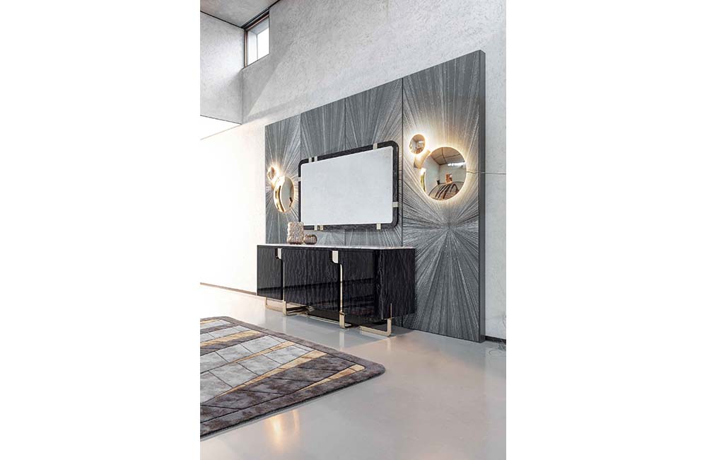 Buffet with 4 doors in Black Bubinga burl veneer with high gloss polyester finish.