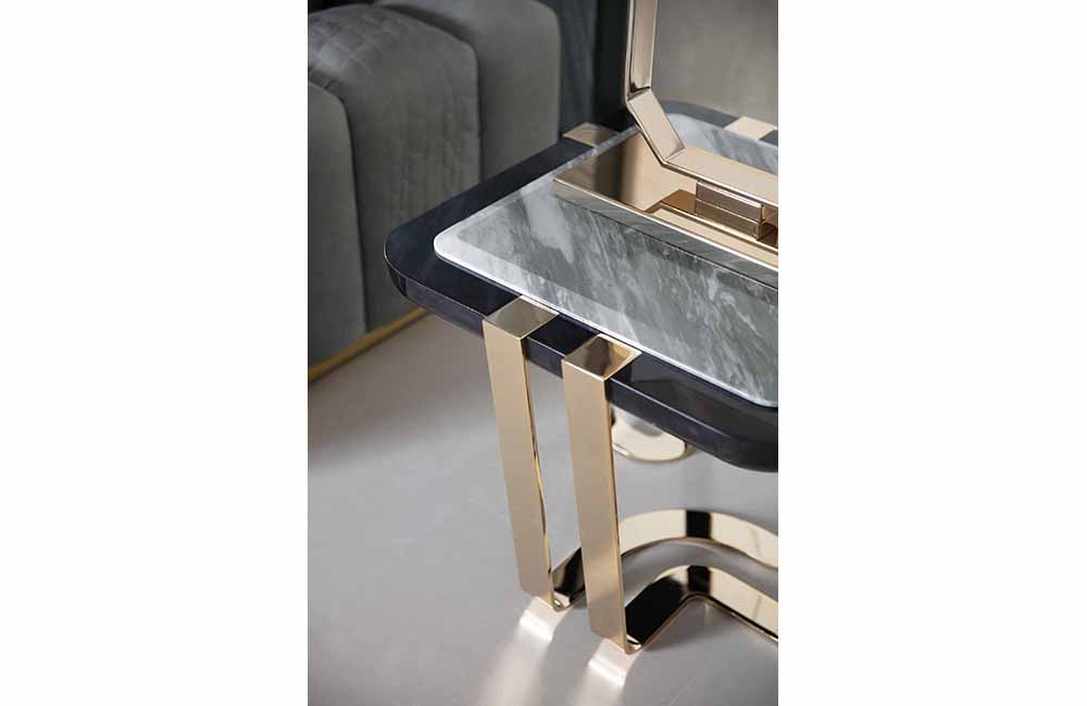 Square end table with frames in Black Bubinga burl veneer with high gloss polyester finish