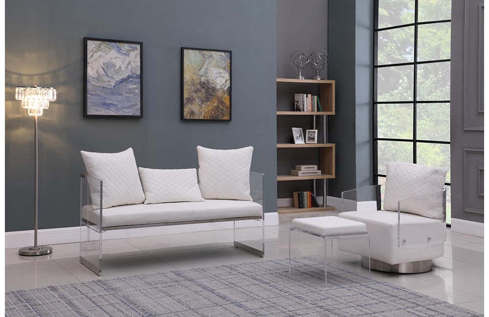 - Detail Description: Contemporary Acrylic Bench w/ Upholstered Seat