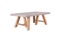 The Civic Modern Concrete & Acacia Coffee Table features a dazzling rectangular dark gray concrete table top and solid Acacia wood with gray brush finish frame with wood grains. Featuring a tripod leg design, the base has a T-shape support for reinforcement. Requiring some assembly, this modern coffee table gives a touch of rustic feel in your dining room.