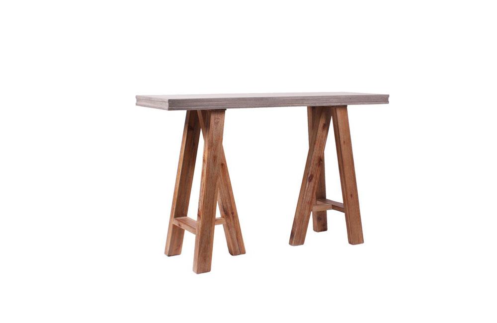 The Civic Modern Concrete & Acacia Console Table presents a superb design and style featuring a stunning rectangular dark gray concrete table top and solid acacia wood with gray brushed finish base. The base imitates a tripod leg design fortified by T-shape support with wood patterns on the surface. Requiring some assembly, this modern console table gives your living space a new modish look.