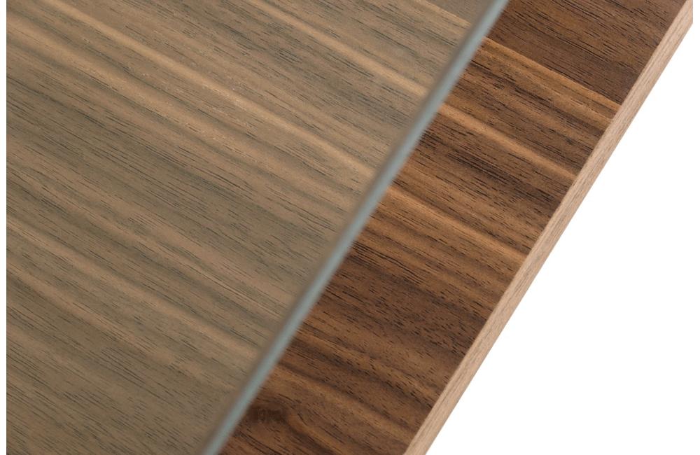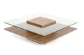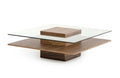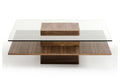 The Clarion Modern Walnut and Glass Coffee Table presents simple lines featuring 2-level surfaces in walnut veneer finish and clear tempered glass. The combination of these two materials sets an interesting appeal.