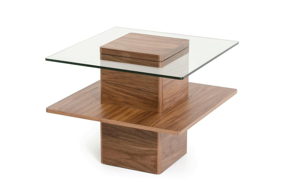 The Clarion Modern Walnut and Glass End Table is exquisitely designed using clear tempered glass top and walnut veneer finish. Featuring a 2-level design, the walnut grains added to its charm.