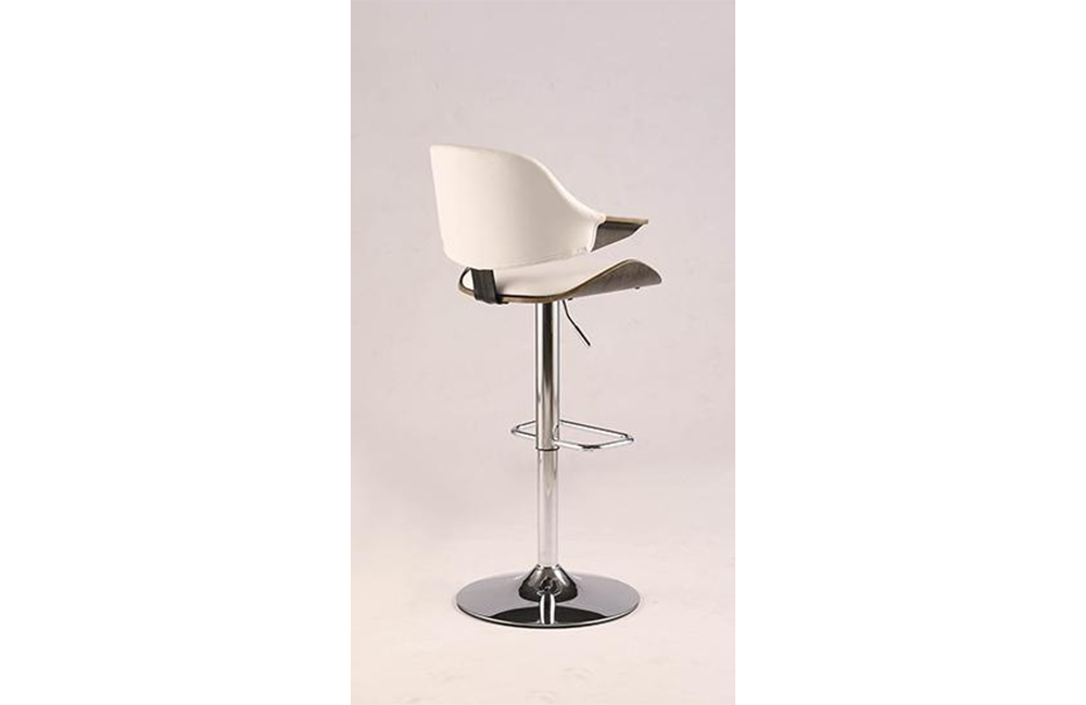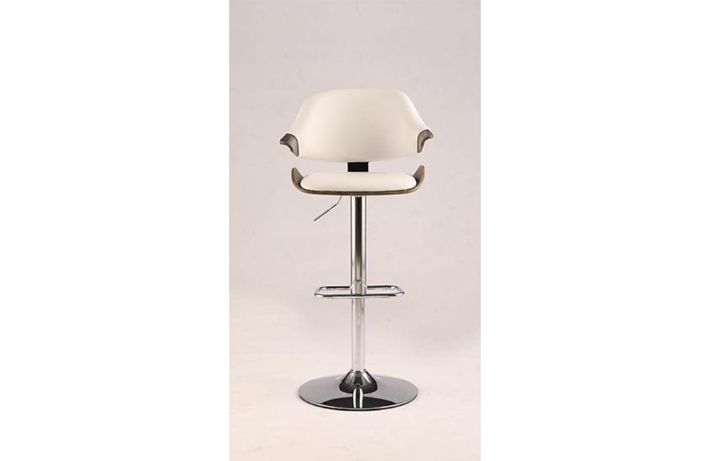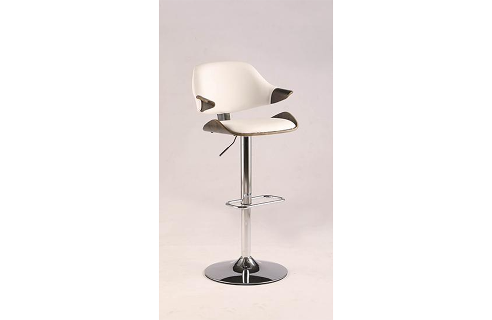 A gorgeous adjustable stool that seamlessly combines comfort and utility in one attractive package! White leatherette seating provides truly regal relaxation, while the swivel and adjustable height functionality add utility, making this an eminently modern piece.