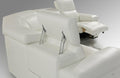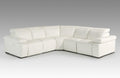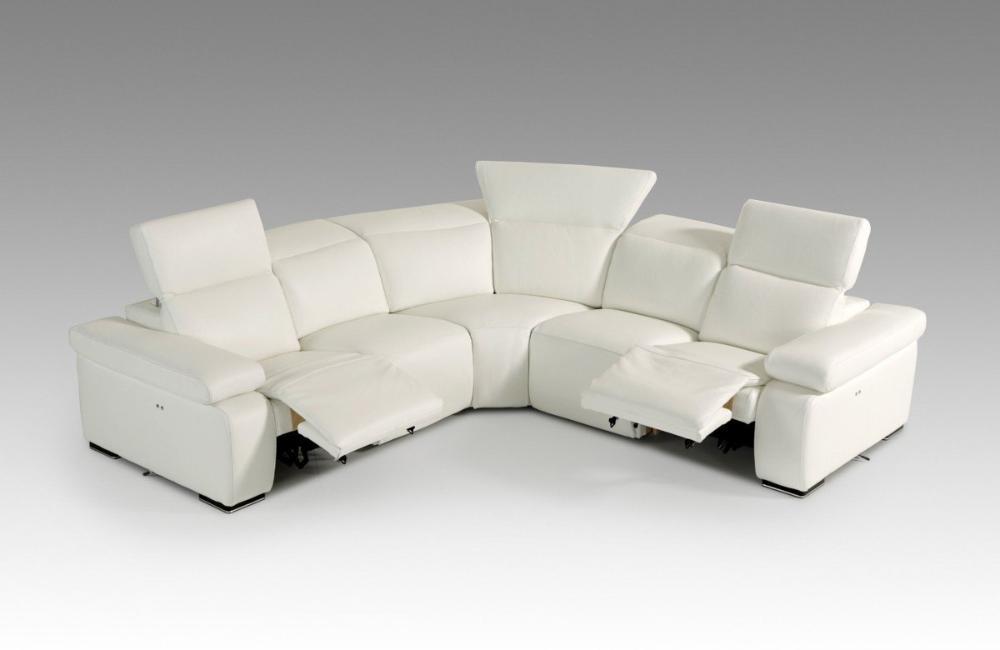 The Hyding Modern White Italian Leather Sectional Sofa offers a smart practical design featuring 2 electronic corner recliners and adjustable headrests. Hand made in Italy, it is upholstered in creamy Panarea snow white Cat H9500 full Italian leather. The spring seat cushions are encased in foam to prevent sagging.