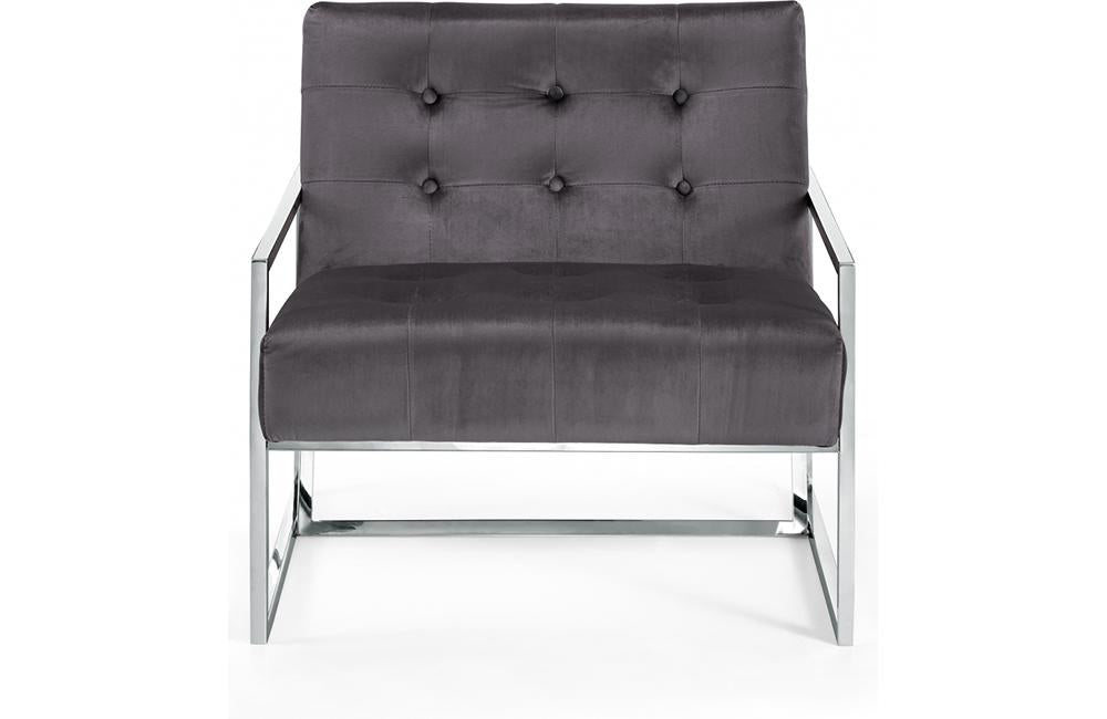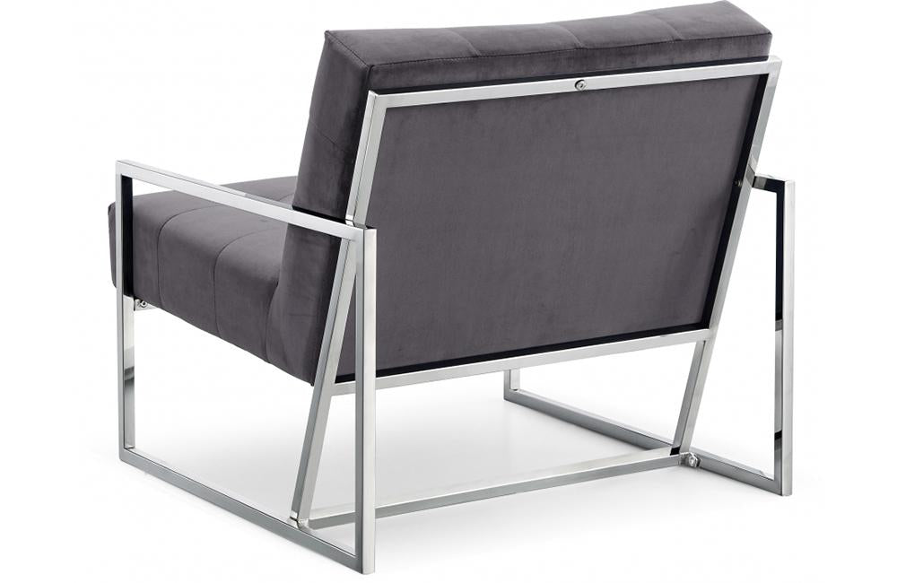 Cozy up to the welcoming comfort of this beautiful Alexis black velvet accent chair. A stainless steel base and frame makes this retro-themed chair a durable and lasting addition to your living room or elsewhere. The sleek velvet upholstery feels great to the touch, while thick seat and back cushions cradle your body in comfort. Both cushions are tufted, helping them keep their fill longer and extending the chair's useful service life.