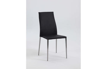 Stackable side chair available in black and gray, Contour back are designed ergonomically for your comfort, Brushed stainless steel chair legs.