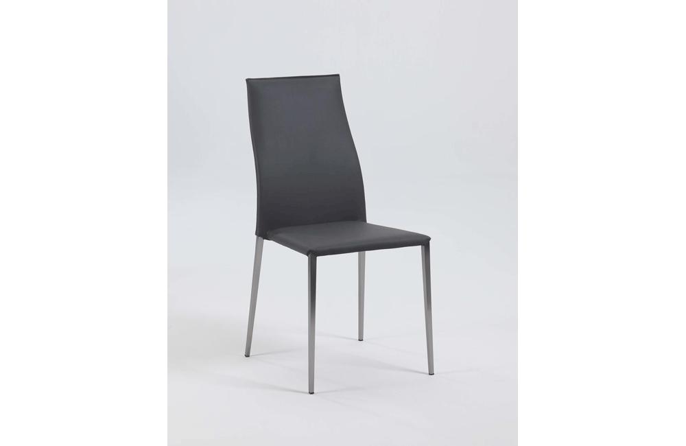 Stackable side chair in gray, Contour back are designed ergonomically for your comfort, Brushed stainless steel chair legs.