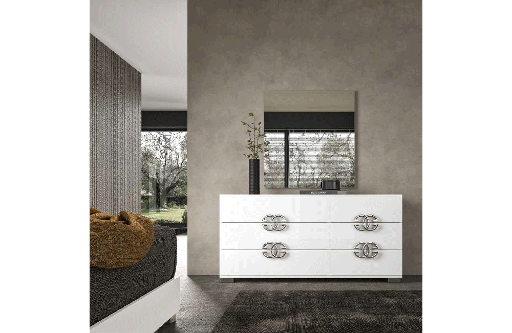 Stylish White High Gloss Finish Bedroom from Italy.