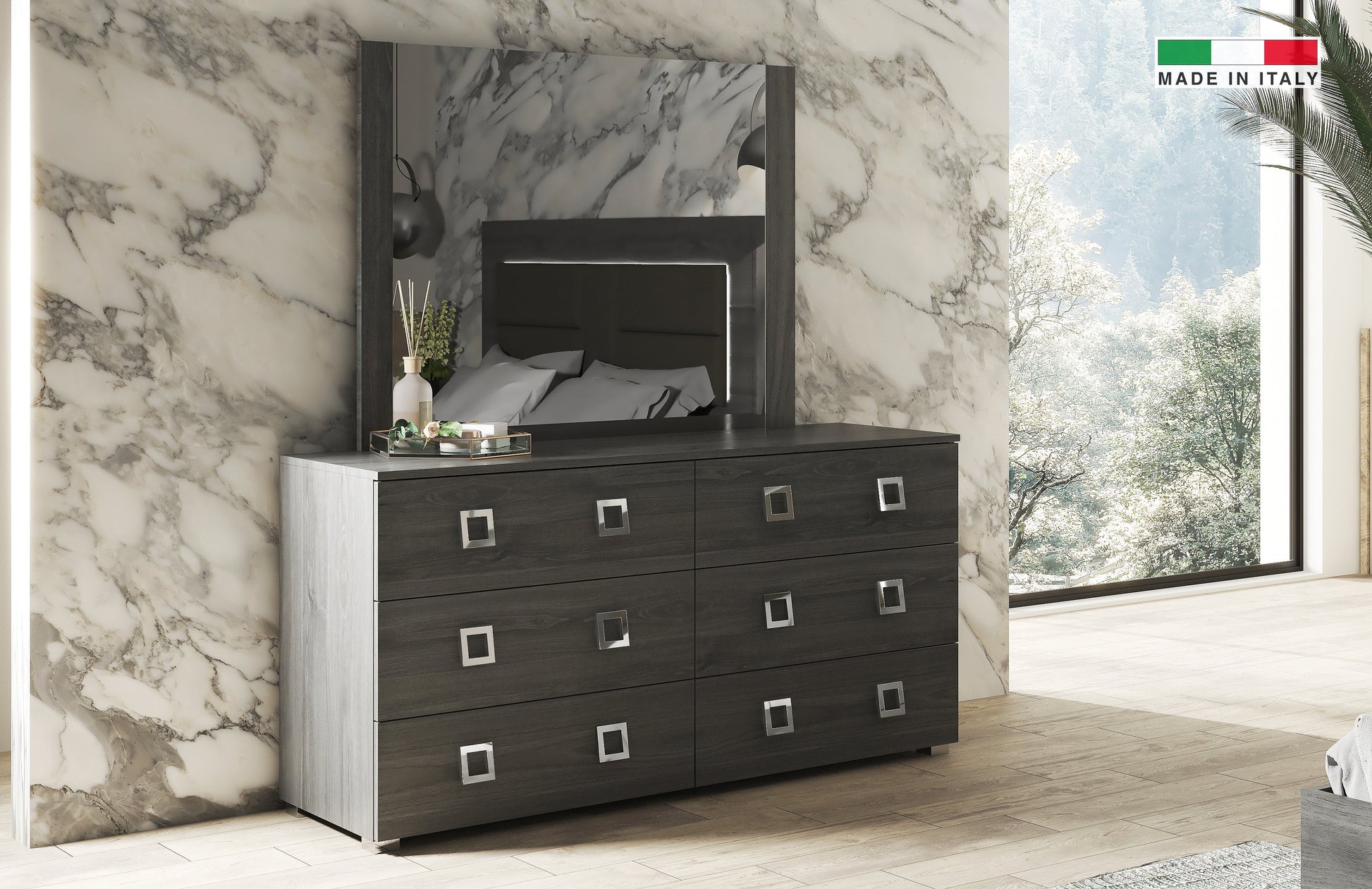 Beautiful and elegant bedroom set Dafne. Built in LED light on a headboard. Solid Platform (no wooden slats), no box spring required. Self-closing drawer mechanism. Made in Italy.