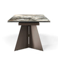 Dante Ceramic Dining Table with extensions. Non scratchable surface, great for gatherings or everyday use. Metal base copper finish. Make your meals extra memorable with a table that extends to fit everyone (and still looks amazing afterward). Plus, with a surface that's scratch-proof, you'll have plenty of time to focus on creating the perfect dining experience (instead of worrying about spills or scratches).