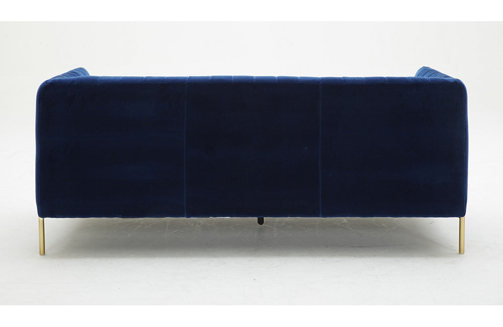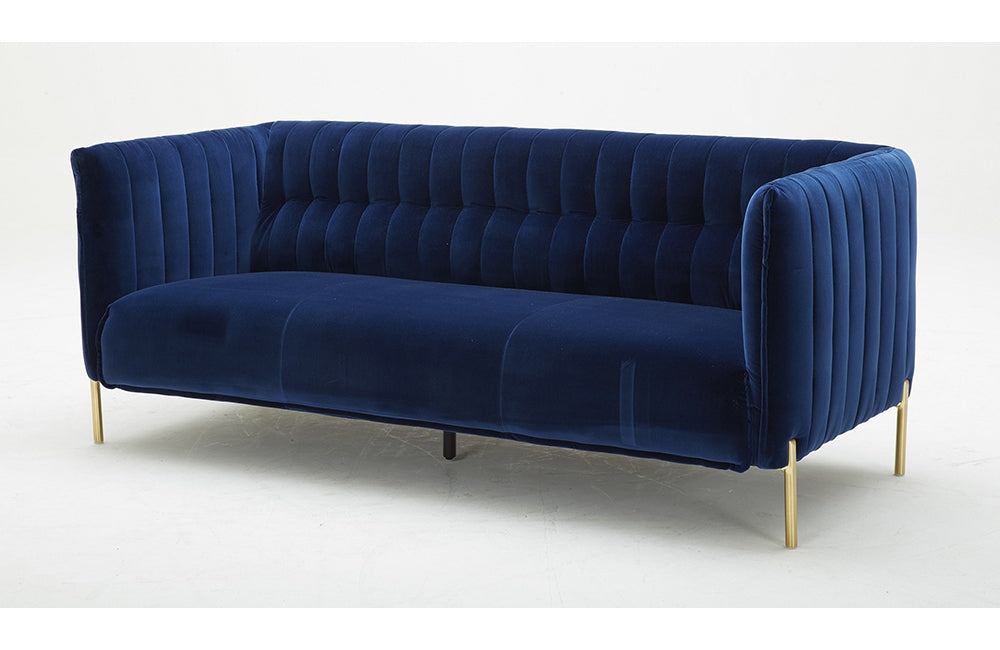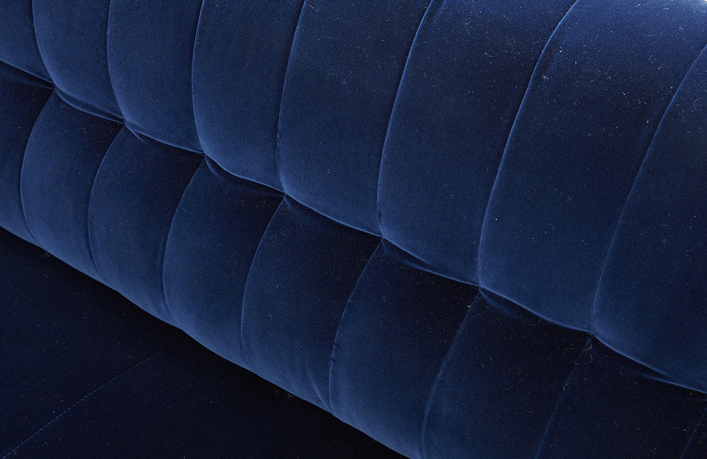 Paramus is proud to announce the addition of the Deco living room set to our Fabric Collection. Upholstered with a luxuriously soft velour fabric, the Deco exudes a prominent ultra-modern design, while the vertical tufting throughout the set reminds us of its traditional background. The gold legs further distinguish the Deco as an extraordinary addition to any living room. The Deco is available in Blue or Pumpkin.