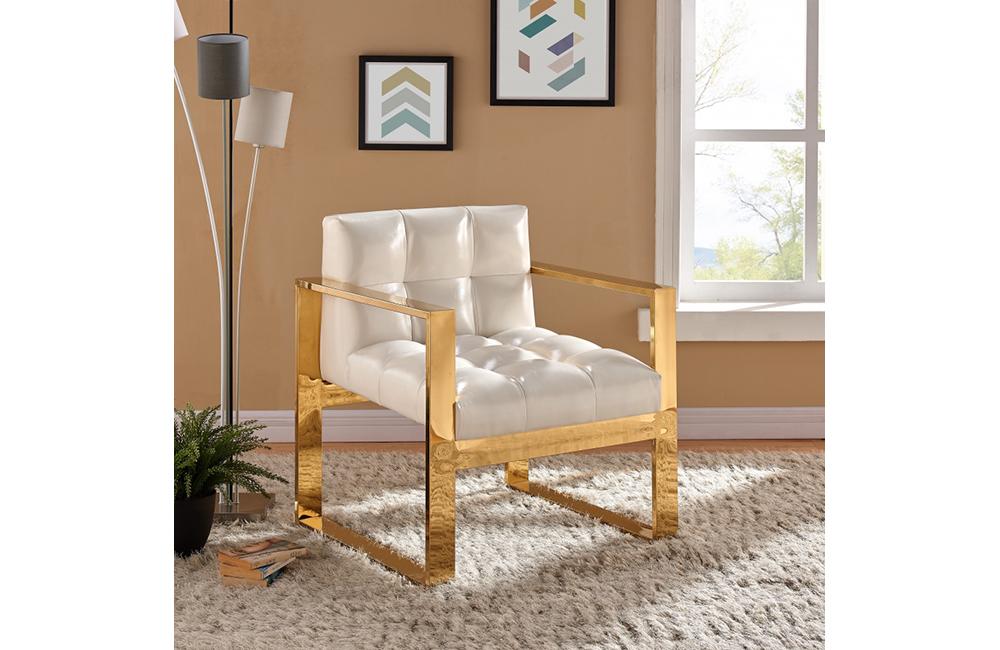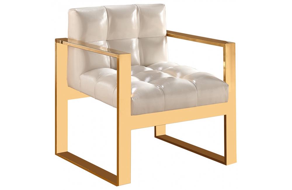 Elegant and eye-catching, the stunning Dena Chair from Meridian Furniture is the perfect addition to any space. Rich leather covers the plush, tufted seat, padded with high-density foam. Strength is offered by the stunning Stainless Steel legs, which feature a beautiful Gold finish.