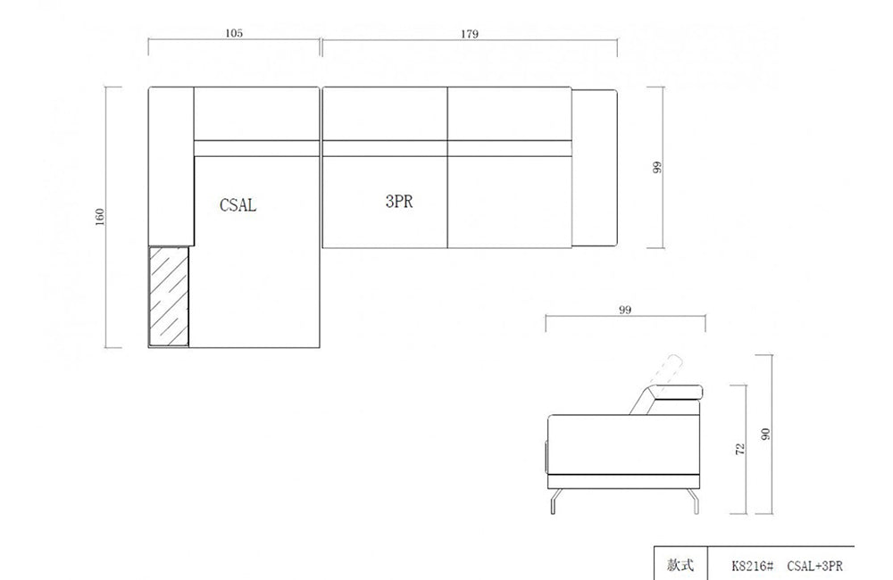 LAF Chaise: W41" x D63" x H28/35"3 Seater: W70" x D39" x H28/35"