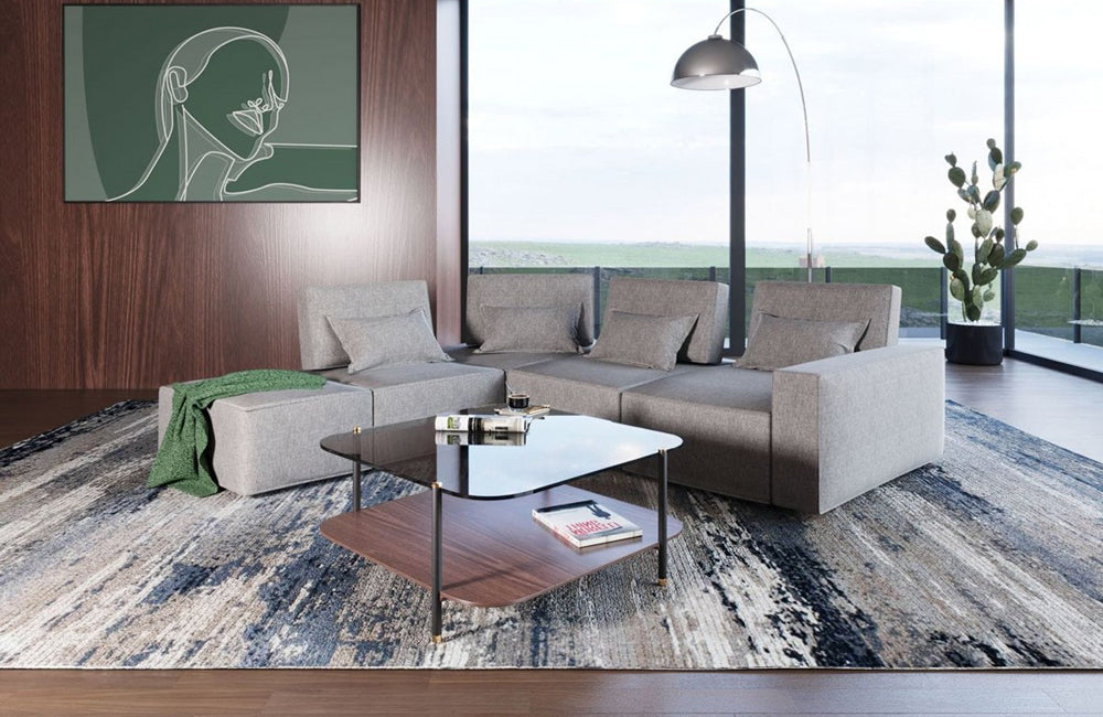 Divani Casa Chapel Modern Light Grey Fabric Sectional Sofa + Ottoman