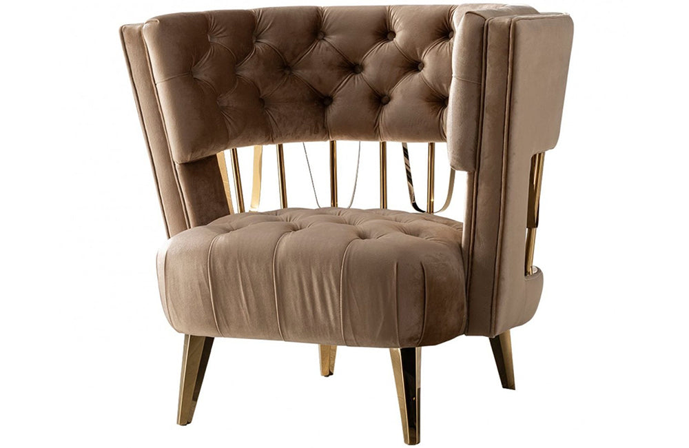 Divani Casa Courtney Beige & Gold Fabric Lounge Chair