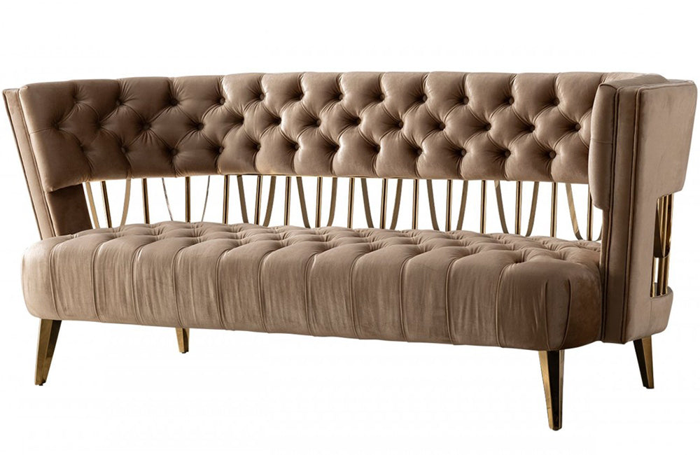 Divani Casa Courtney Beige & Gold Fabric Loveseat