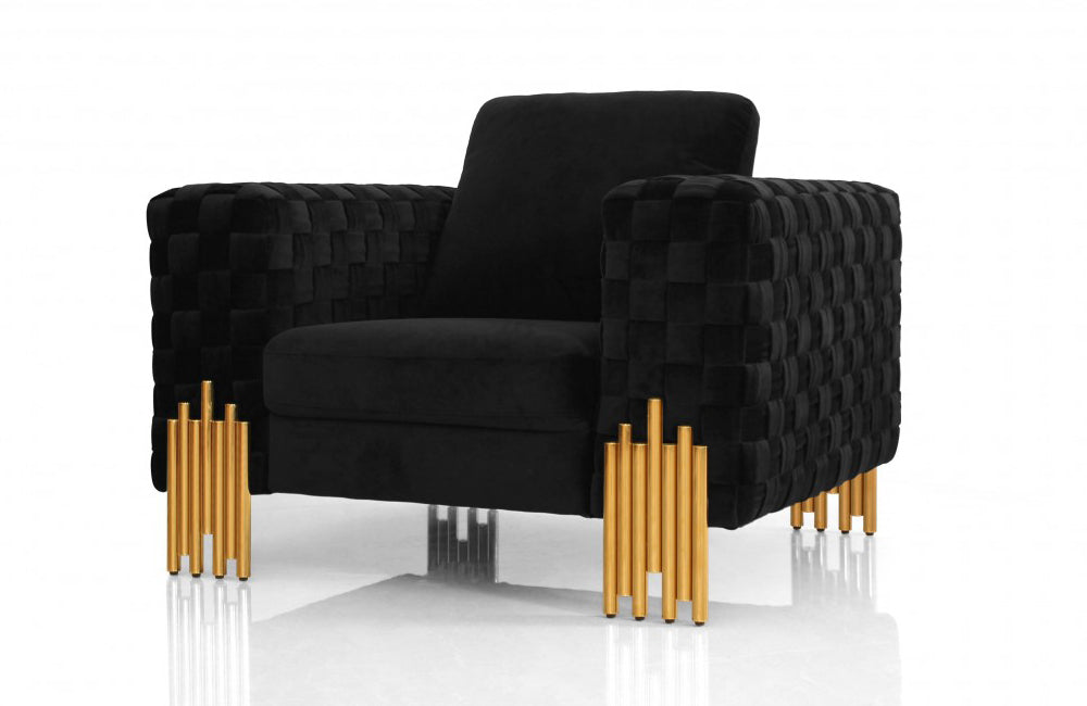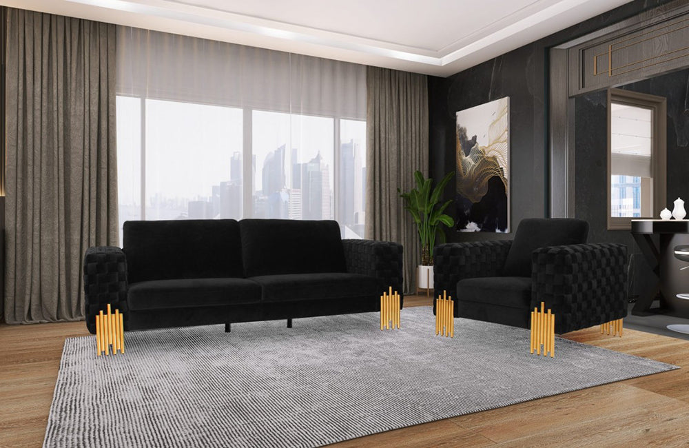Divani Casa Georgia Modern Velvet Glam Black + Gold Sofa Set