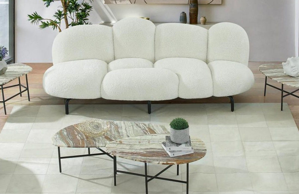 Divani Casa Glaster Contemporary White Sherpa 88" Bubble Sofa