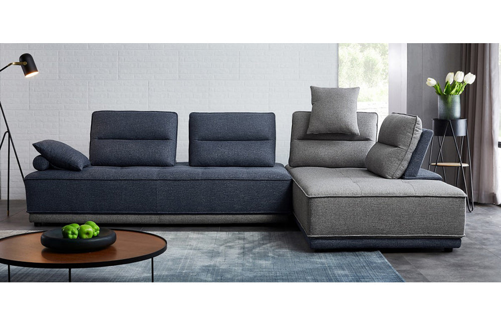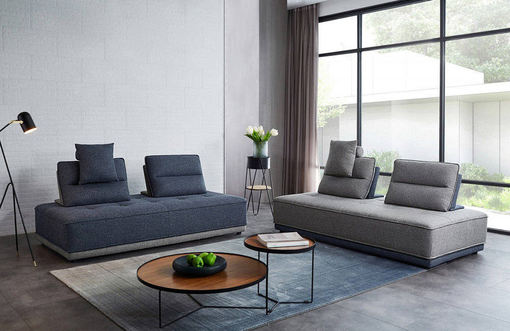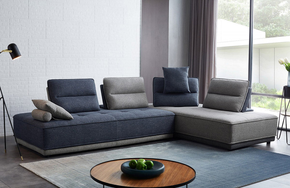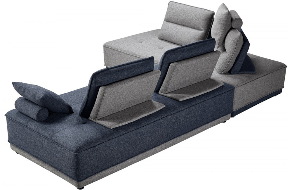 Divani Casa Glendale Modern Blue + Grey Fabric Modular Sectional Sofa