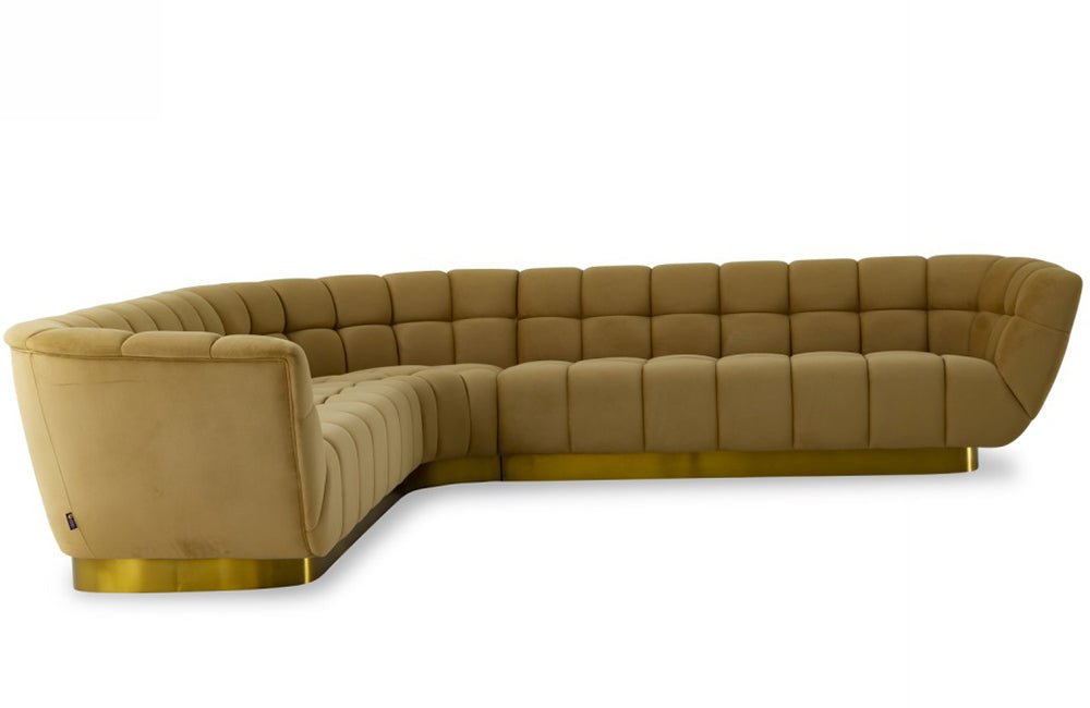 Divani Casa Granby Glam Mustard and Gold Fabric Sectional Sofa