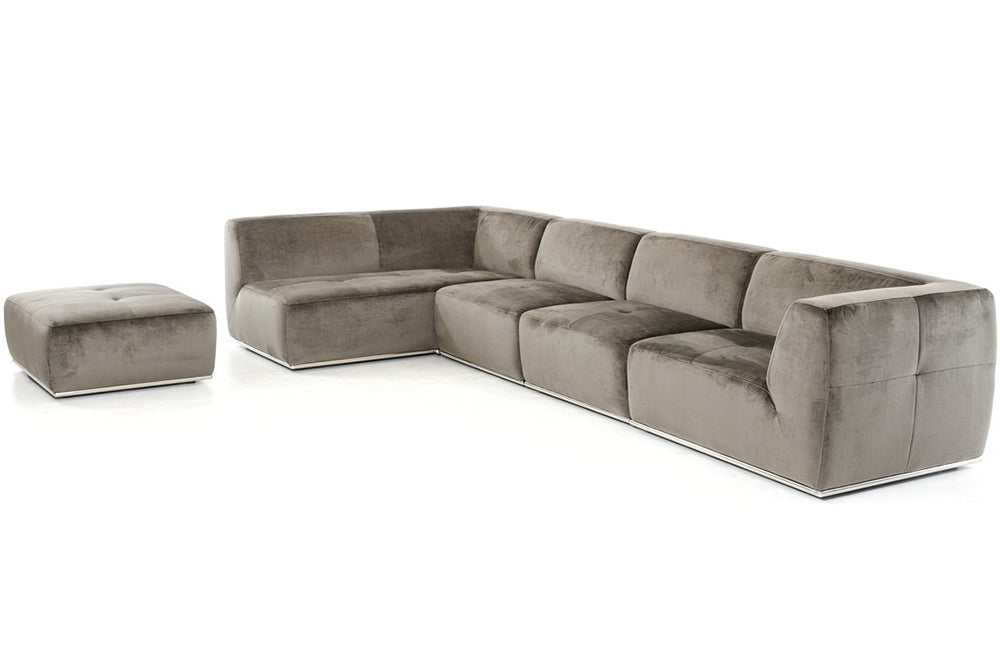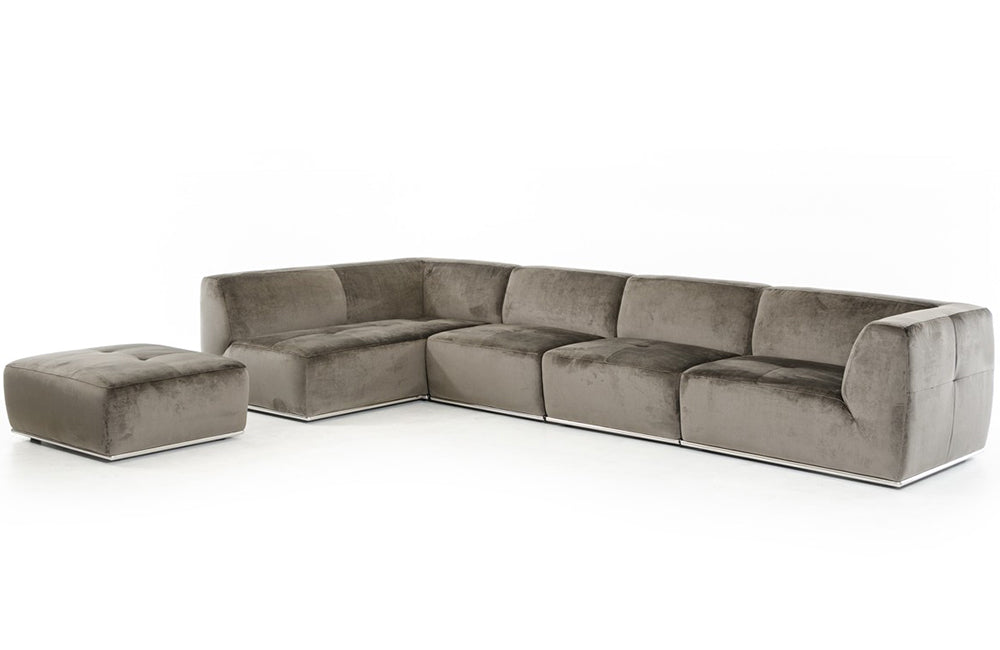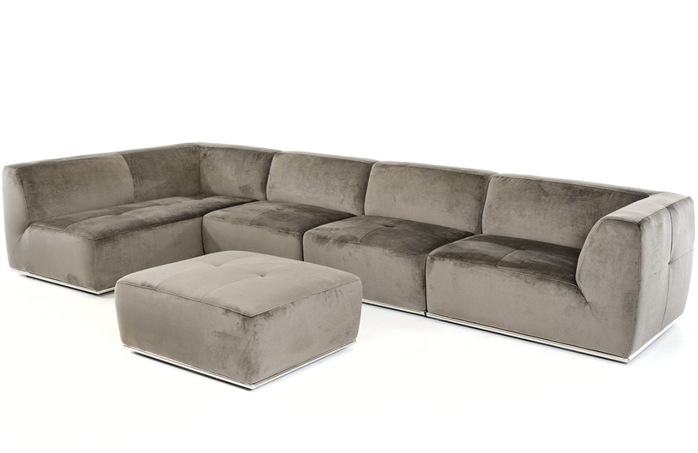 Divani Casa Hawthorn Modern Grey Fabric Modular Chaise Sectional Sofa + Ottoman