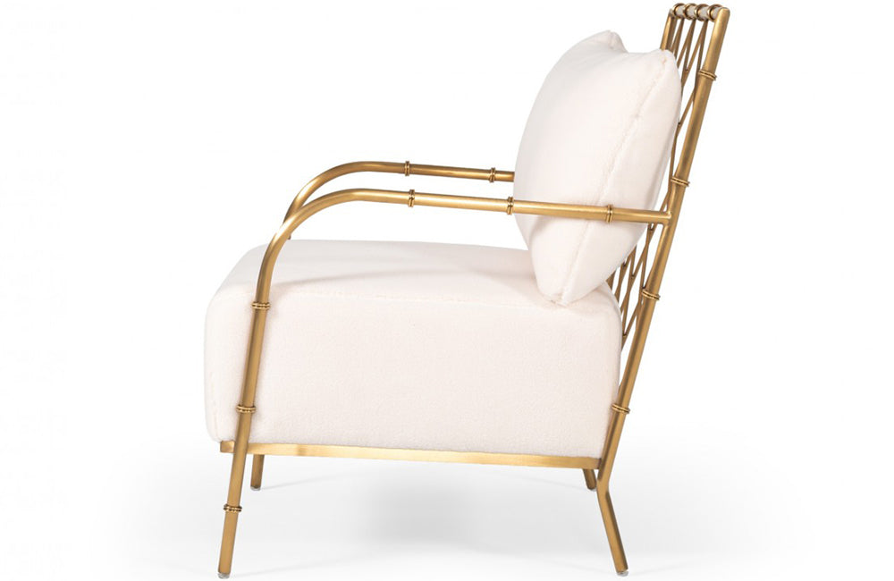 Divani Casa Ignacio Glam White Velvet & Gold Accent Chair