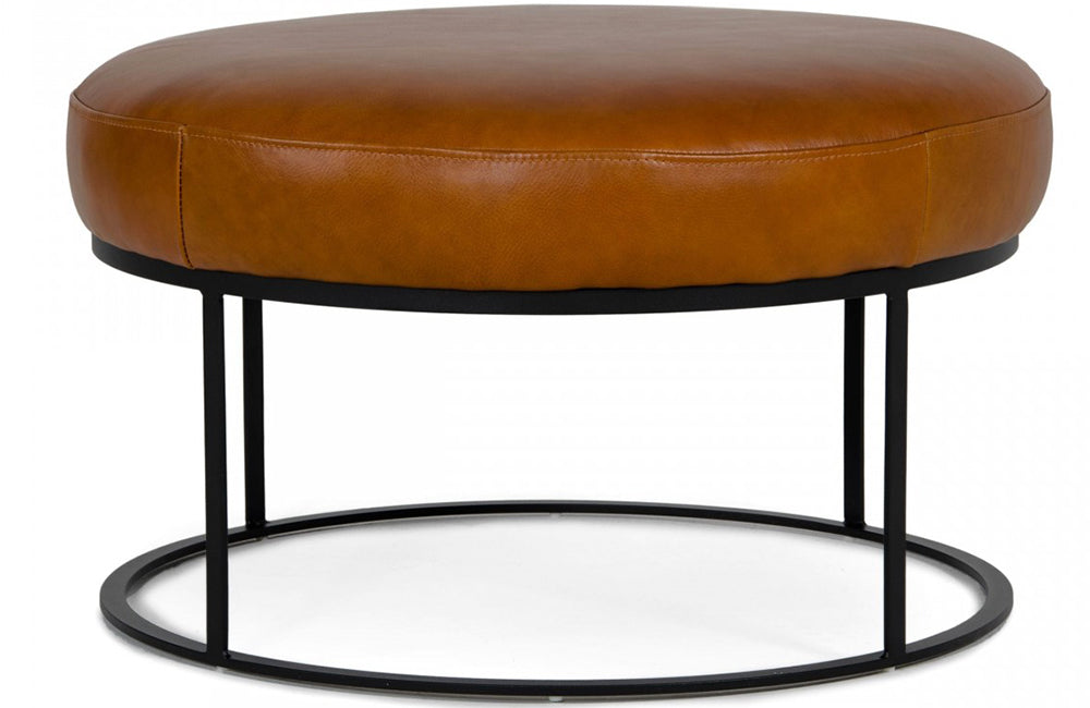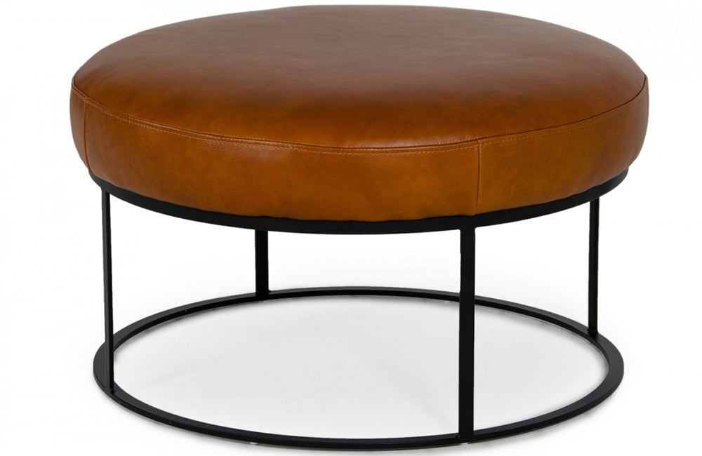 Divani Casa Jacoba Modern Camel Leather Round Ottoman