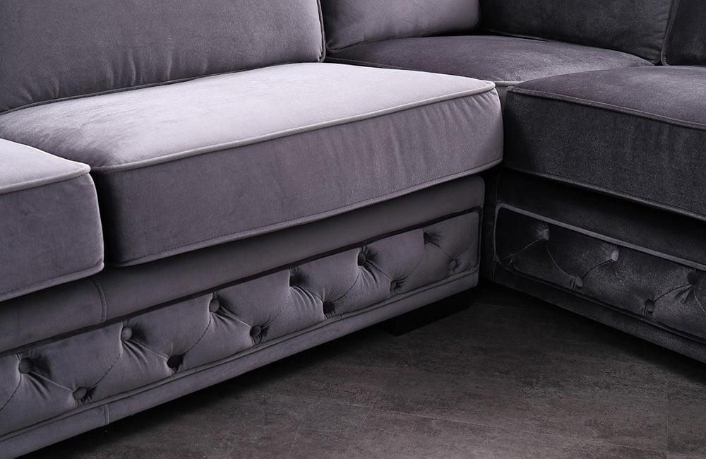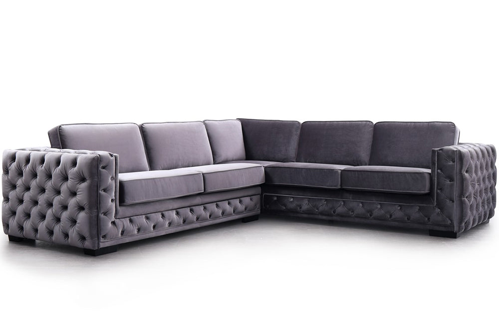 Divani Casa Jean Modern Grey Velvet Sectional Sofa