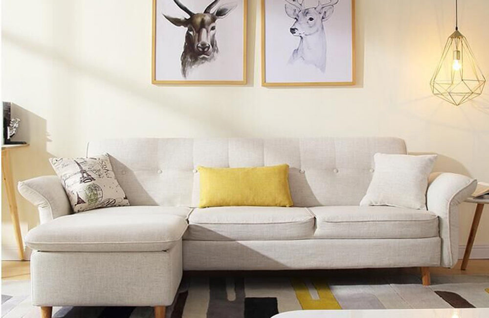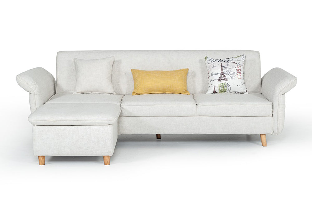 Divani Casa Jeremiah Modern Ivory Fabric Sofabed & Ottoman w/ Storage