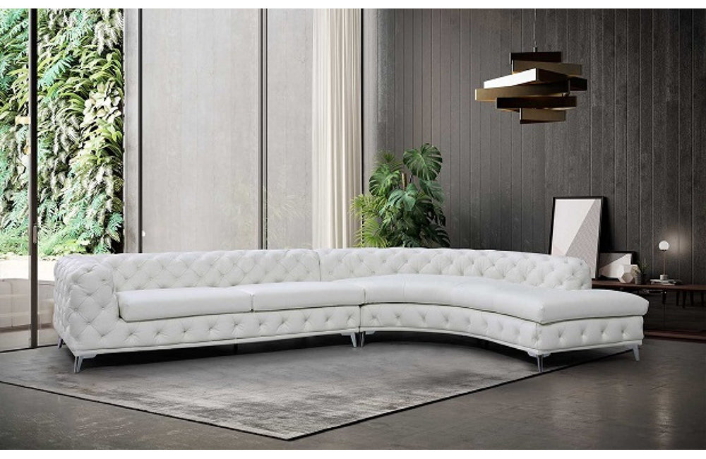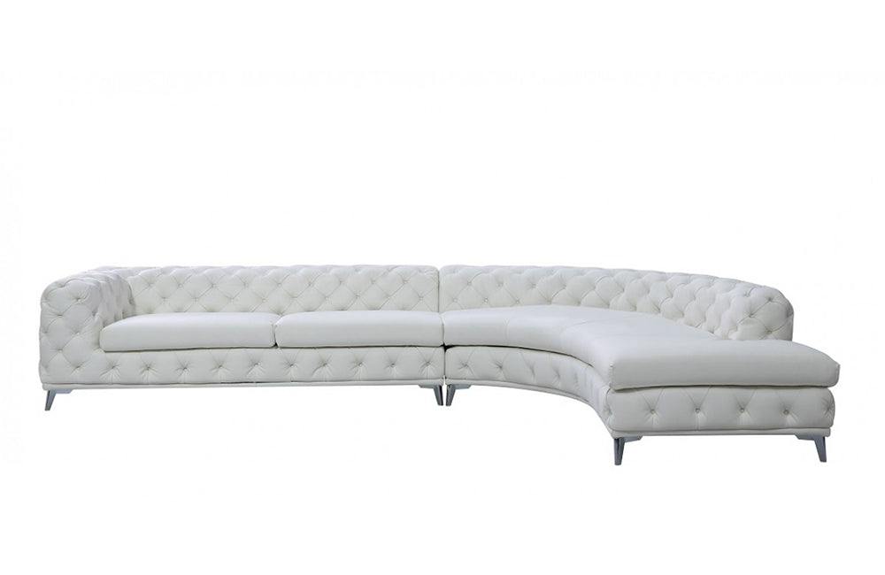 DIvani Casa Kohl Contemporary White RAF Curved Shape Sectional Sofa w/ Chaise