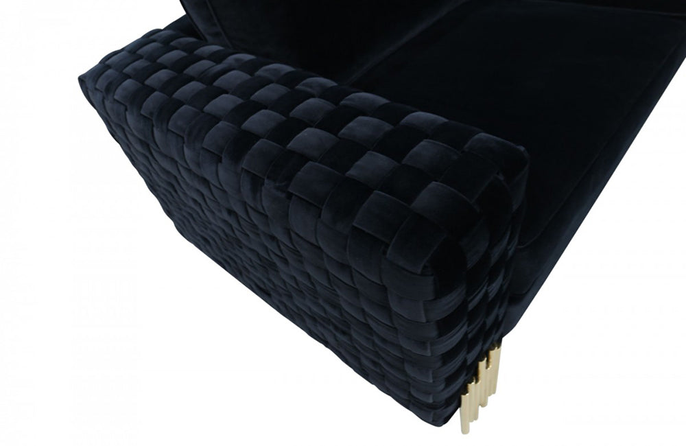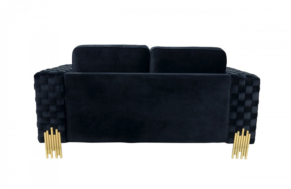 Divani Casa Lori Modern Velvet Glam Black & Gold Loveseat