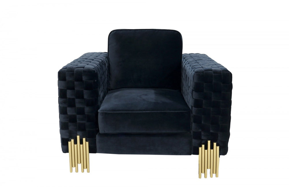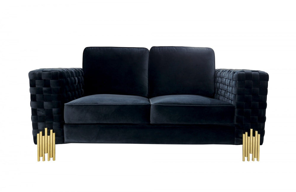 Divani Casa Lori Modern Velvet Glam Black & Gold Sofa Set