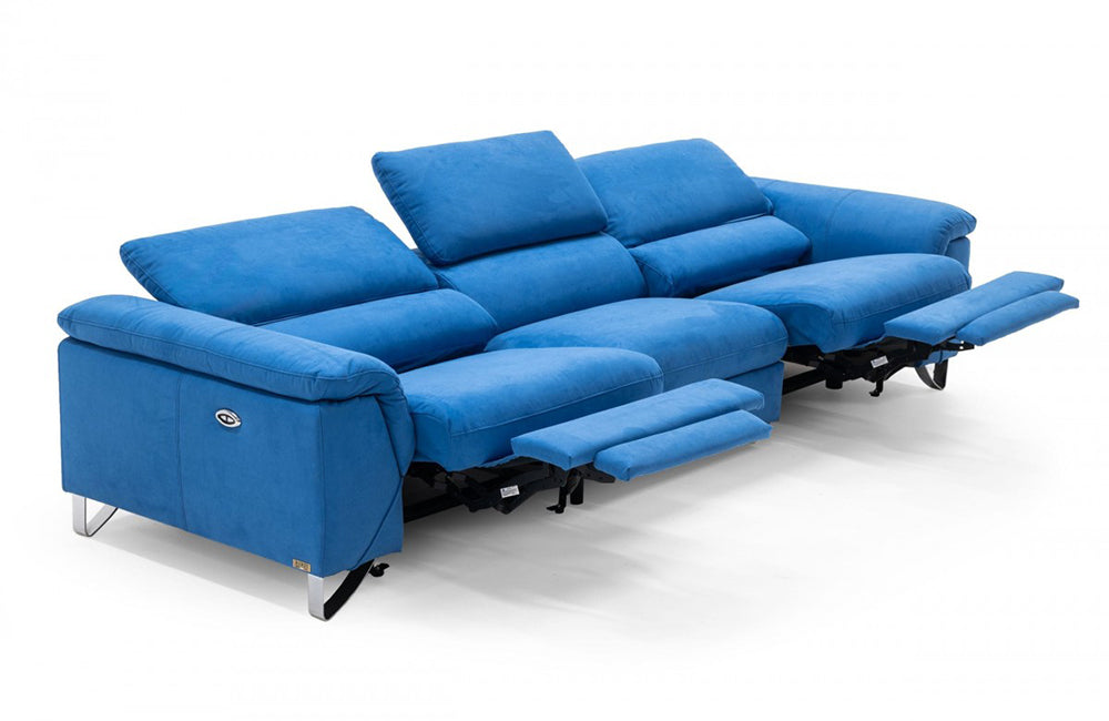 Divani Casa Maine Modern Blue Fabric Sofa w/ Electric Recliners