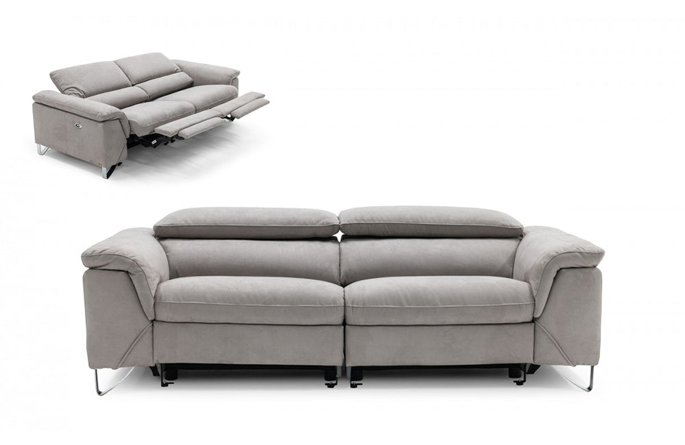 Divani Casa Maine Modern Light Grey Fabric Sofa w/ Electric Recliners
