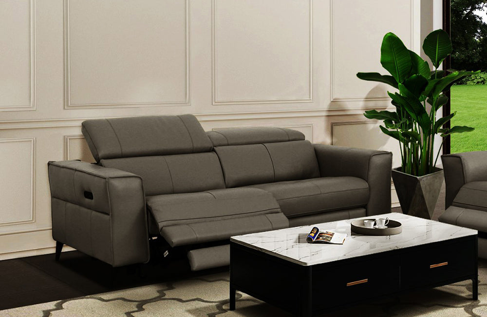 Divani Casa Nella Modern Dark Grey Leather Loveseat w/ Electric Recliners