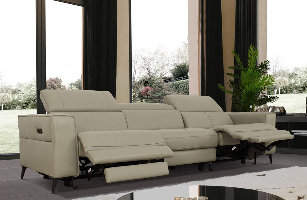 Divani Casa Nella Modern Light Grey Leather Sofa w/ Electric Recliners