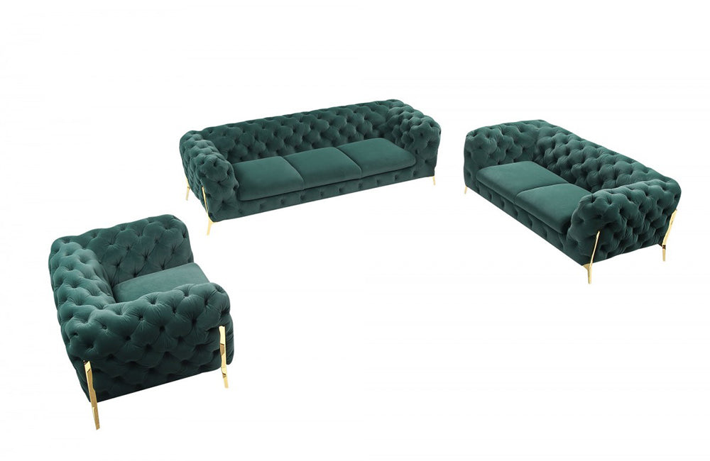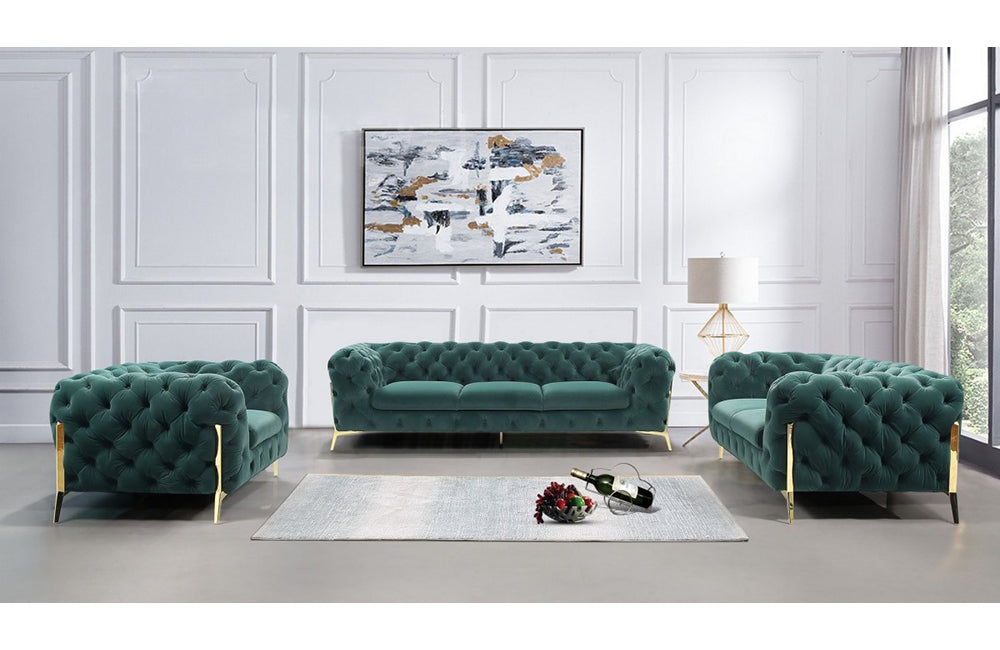 Divani Casa Quincey Transitional Emerald Green Velvet Sofa Set