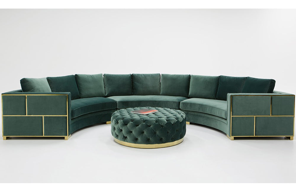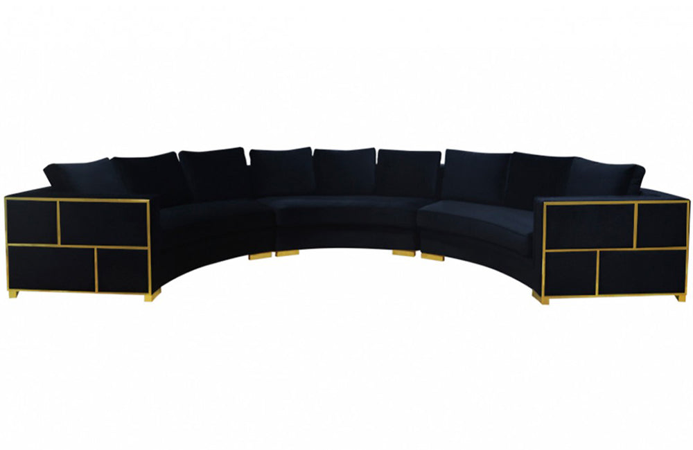 Divani Casa Ritner Modern Black Velvet Curved Sectional Sofa