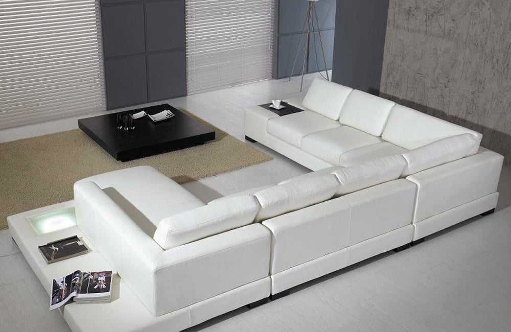 Divani Casa T35 Modern White Leather Sectional Sofa With Light
