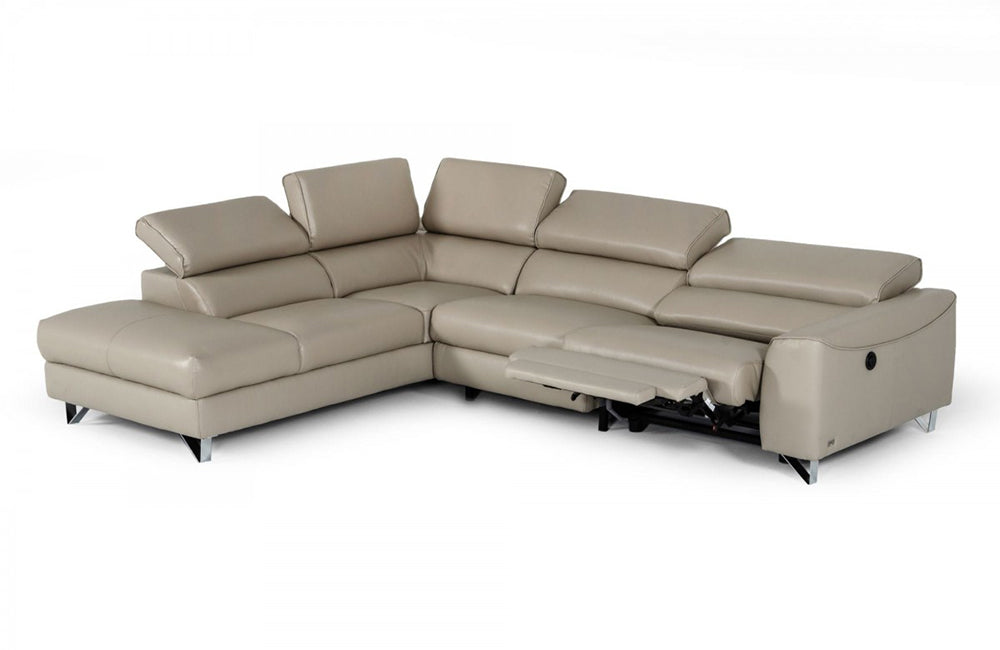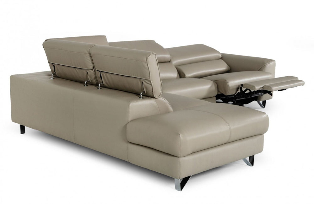 Divani Casa Versa Modern Light Taupe Teco-Leather Left Facing Sectional Sofa with Recliner