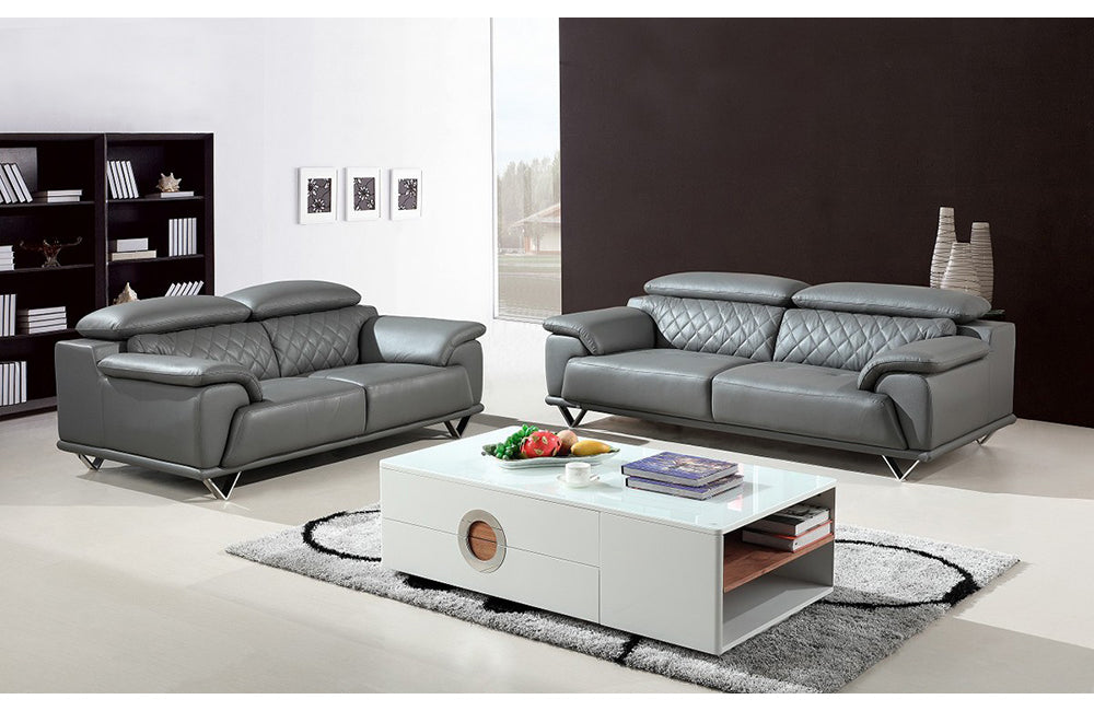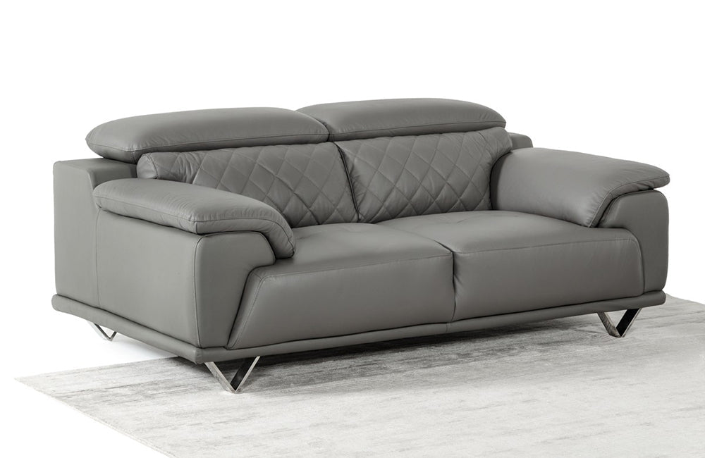 Divani Casa Wolford Modern Grey Leather Loveseat