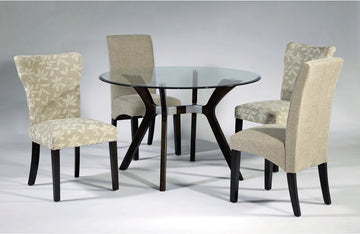Satin dark walnut painted base sets a relaxed, cozy mood in your dining place