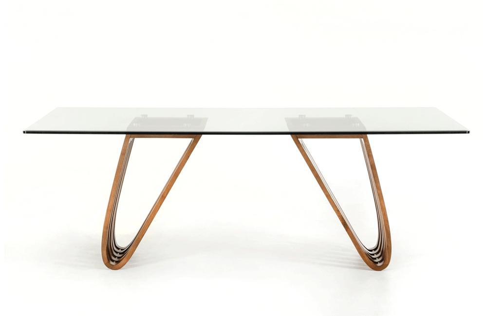 Draper Contemporary Walnut & Glass Dining Table