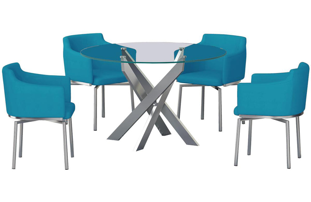 - Detail Description: Dining Set w/ Round Glass Table & Swivel Club Chairs