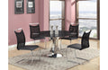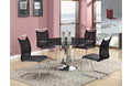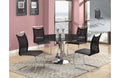 Egidio 5 PC Dining Set - Natural marble black marquina dining table with 4 black meshed back cantilever side chairs in black, gray and red.