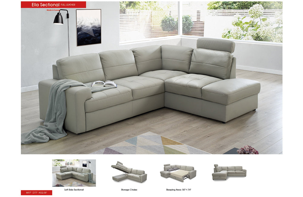 Ella Sectional Right w/Bed & Storage Sofa
