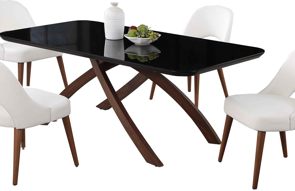 - Detail Description: Dining Set w/ Black Glass Table & Open Back Chairs