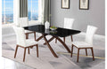 - Detail Description: Dining Set w/ Black Glass Table & Tufted Solid Wood Legged Chairs